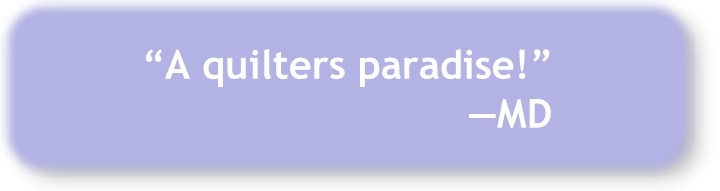 Hand embroidery and Redwork started us on our way to a great shop. We’re a small-town, family-run business located in the Sierra Nevada Mountain Range about 45 minutes from either Truckee, Ca, or Reno, NV. We offer lots of one-on-one time. A social room is available for small groups to use for gatherings, stitching, learning, laughing, sharing, and eating. We also own the Sleepy Pines Motel, so lodging is available for overnighters and retreats.