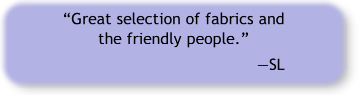 We try to carry all your wants and needs for stitching and quilting. We have the most unique collection of fabric around! Over 2000 bolts of “quilt” quality fabric, patterns, books, and tools. Featuring fabrics from Quilting Treasures, Robert Kaufman, Elizabeth’s Studio, Timeless Treasures, Blank, Windham, In The Beginning, Moda, and more.